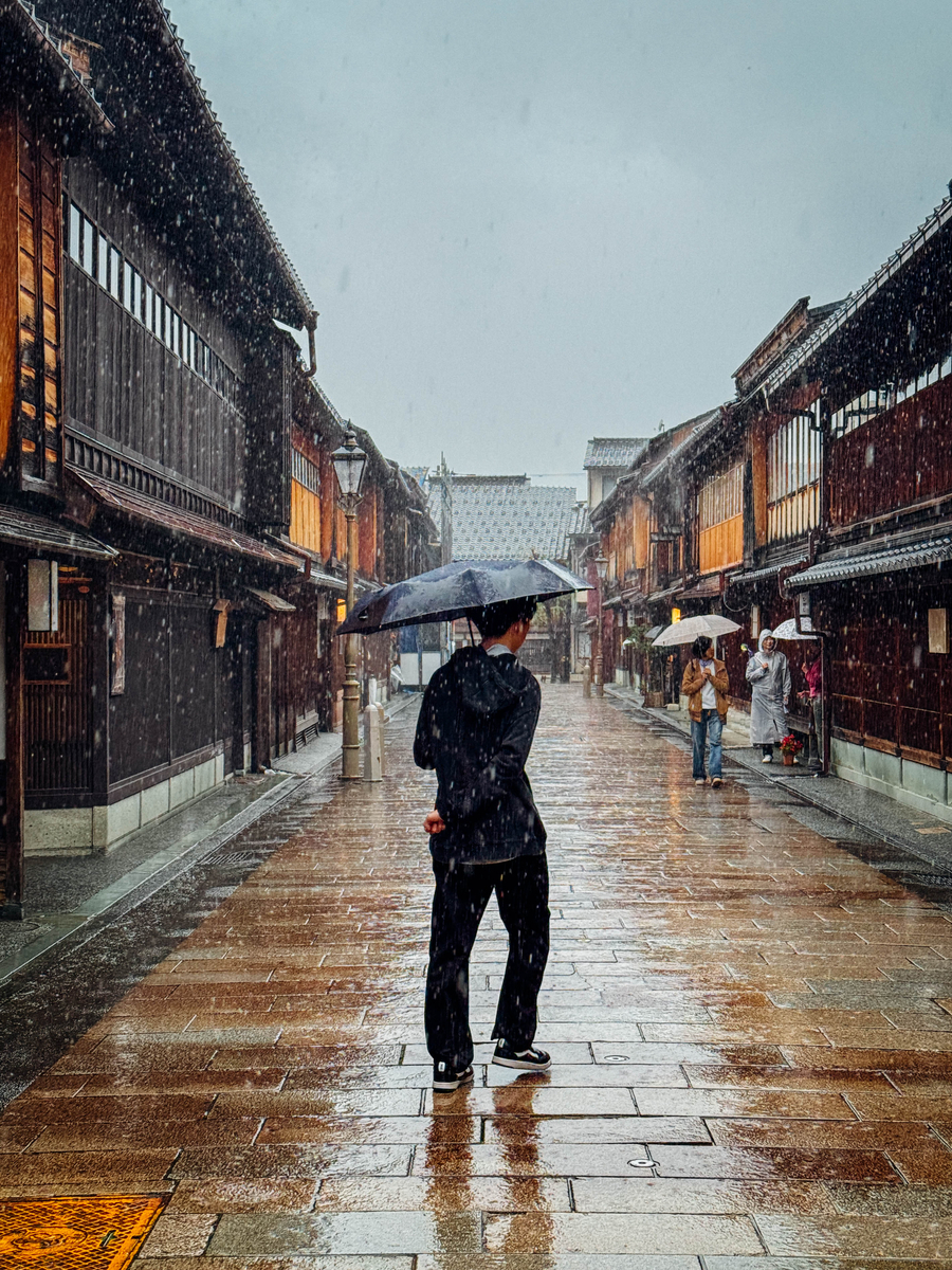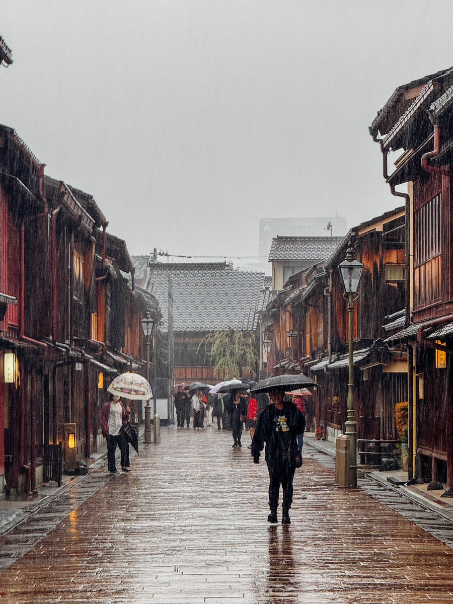 金沢に行ってきました。この日は雨でしたけど、ひがし茶屋街の雰囲気と雨のコラボレーションが良かったので、結果オーライでした。