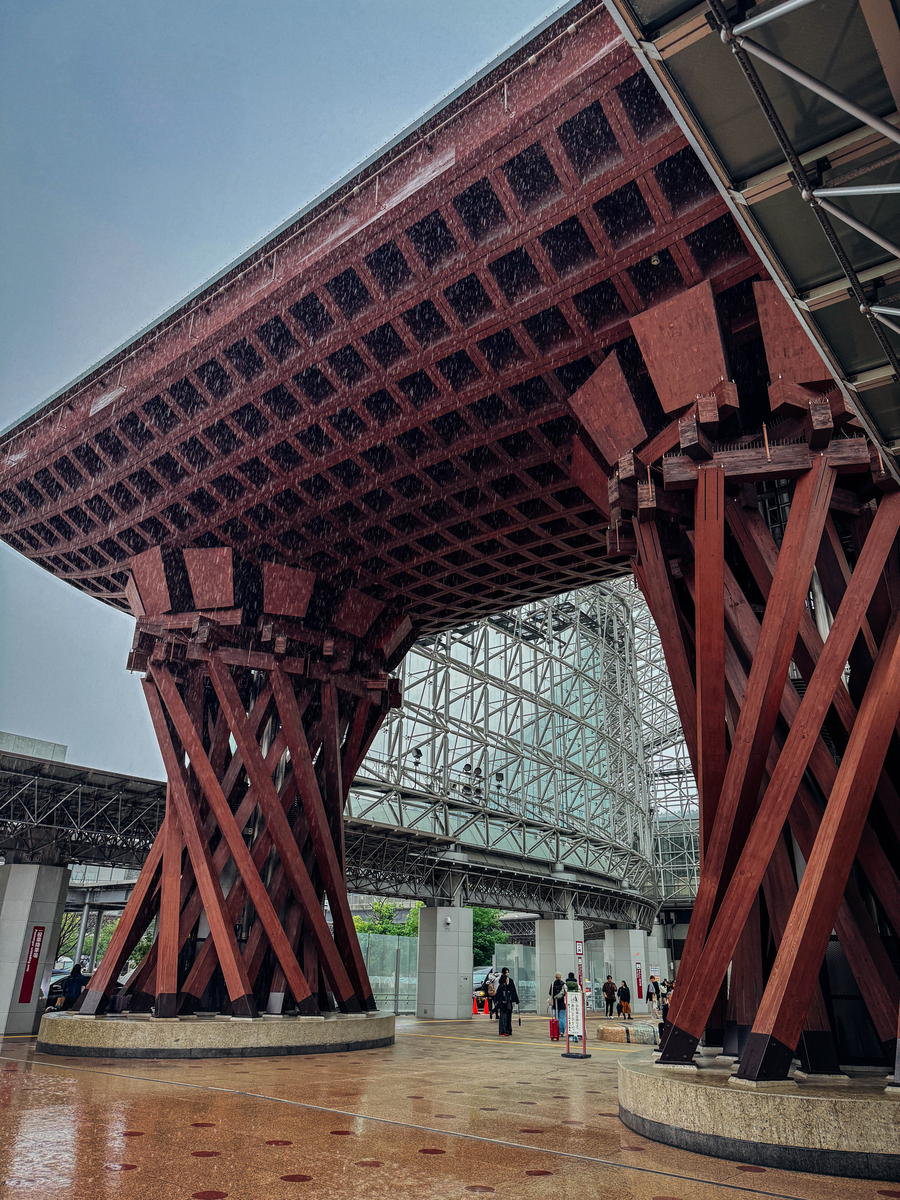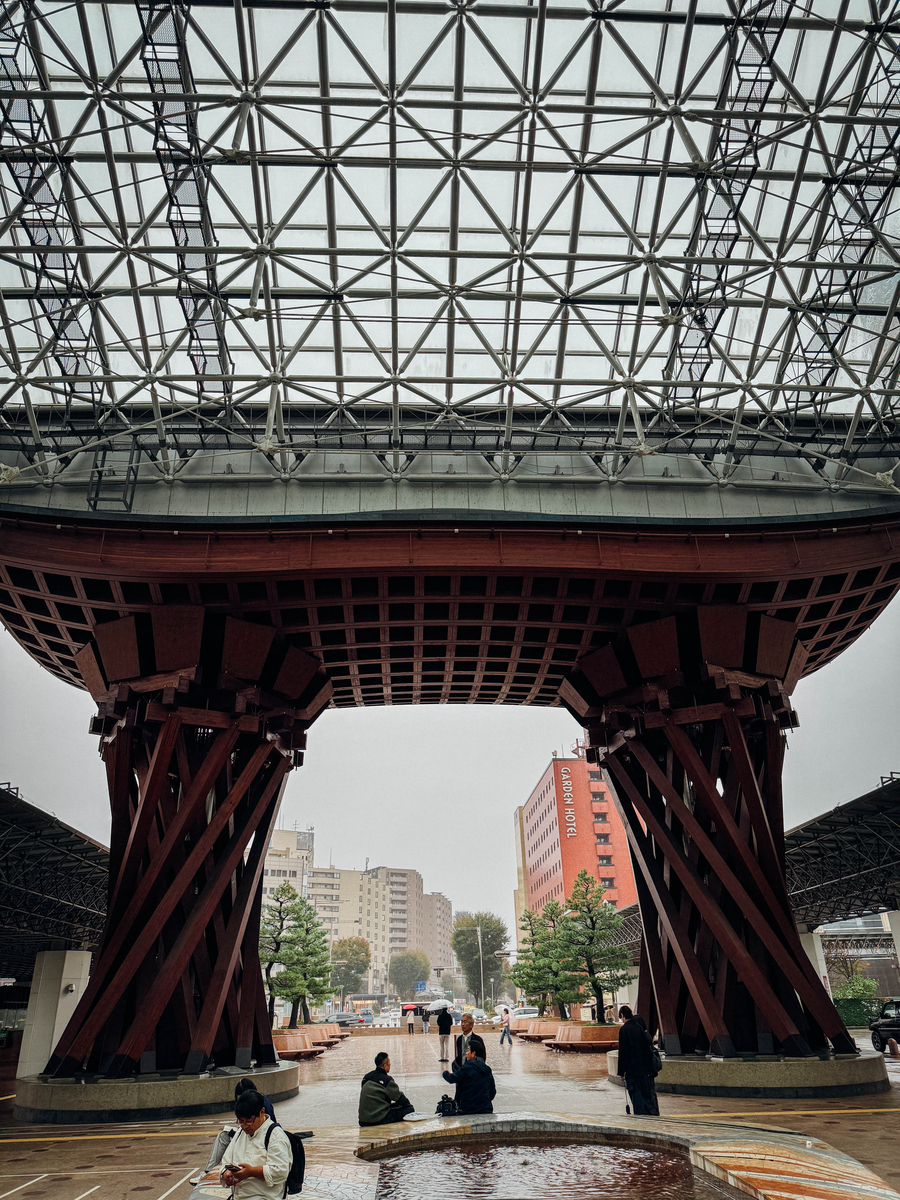 鼓門は、金沢の伝統芸能である能楽で使われる鼓をイメージしているそうです。高さが13.7mあり2本の太い柱に支えられた門構えは、その迫力に圧倒されました。